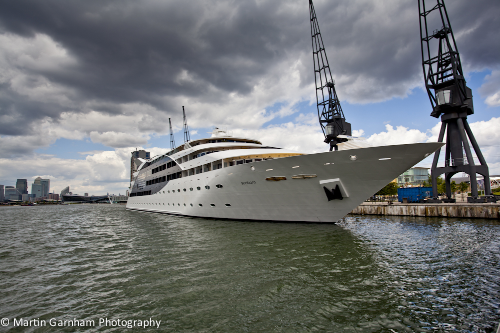 Previous Image Next Image Sunborn Super Yacht Hotel 1/250sec F8 100iso Sunborn Super Yacht Hotel at Royal Victoria Dock, London.