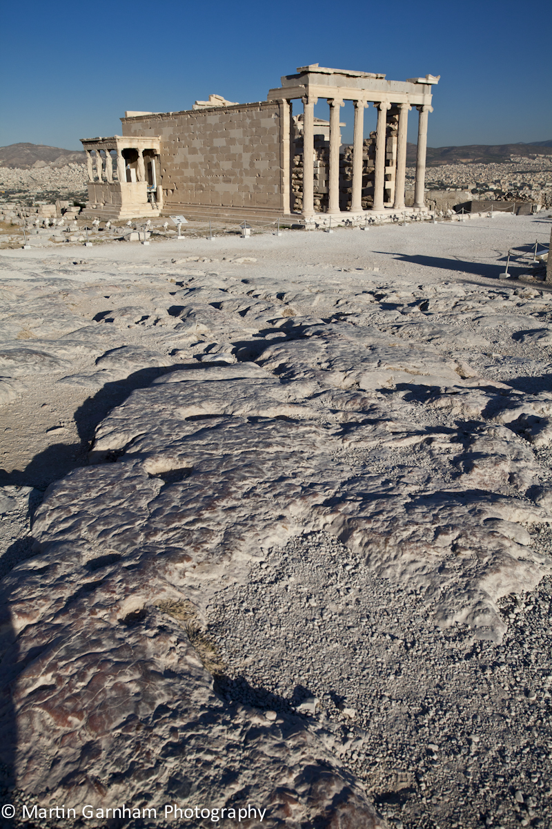 The Erechtheion ancient Greek temple on the north side of the Acropolis of Athens in Greece.