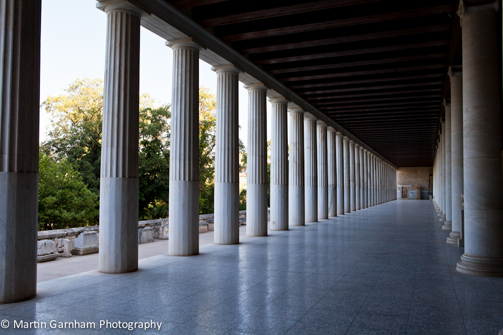 The Stoa of Attalos in the Ancient Agora of Athens in the city of Athens, Greece.