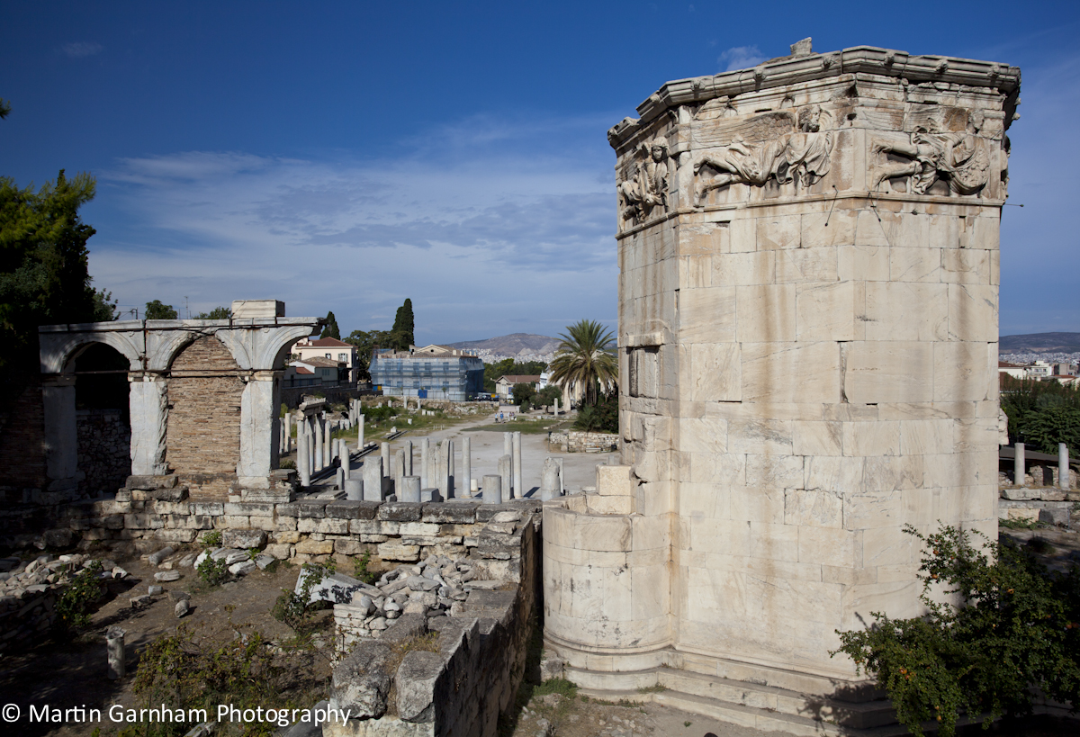 The Tower of the Winds in the Roman Agora in Athens, Greece.