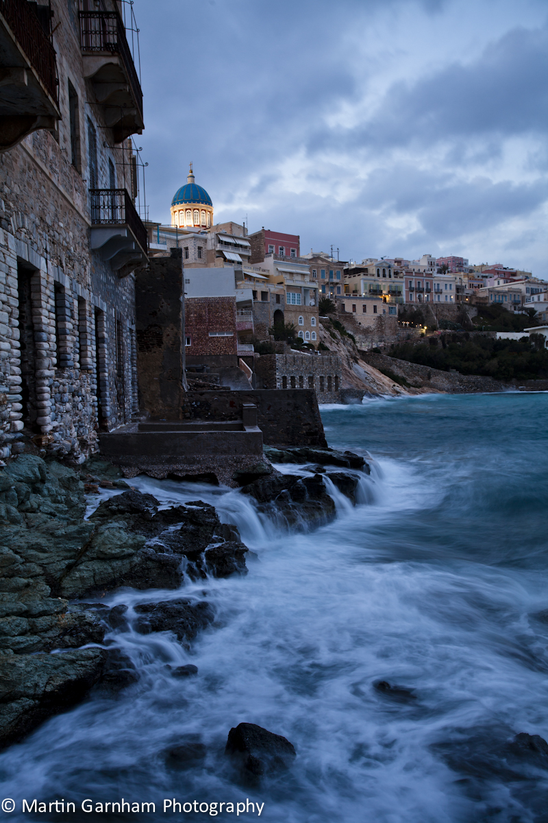 A seascape of the coastline of Ermoupolis in Syros in the Greek Islands.